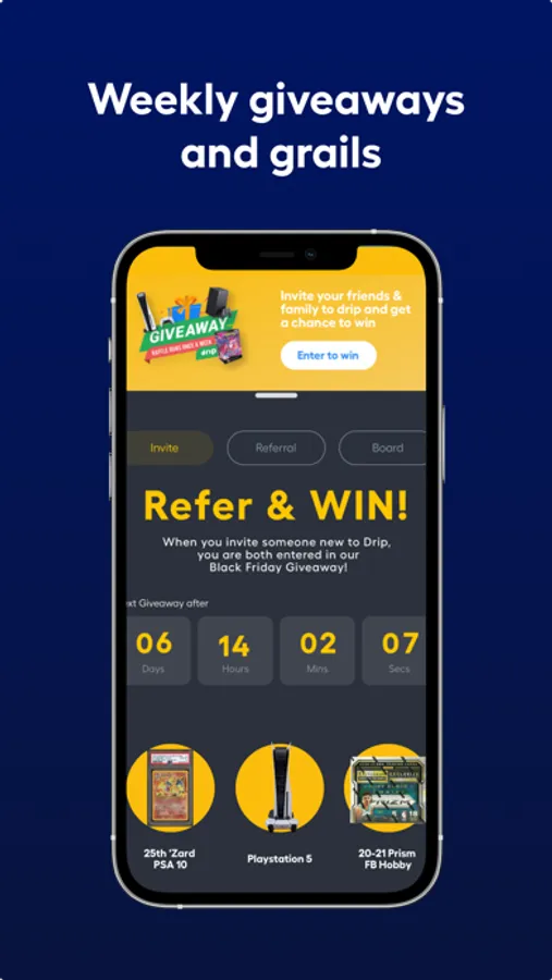 Download Drip Shop app, join amazing live streams and start building your trading card collections or sports card collections. We run weekly giveaways exclusively for app users, so don't miss out.