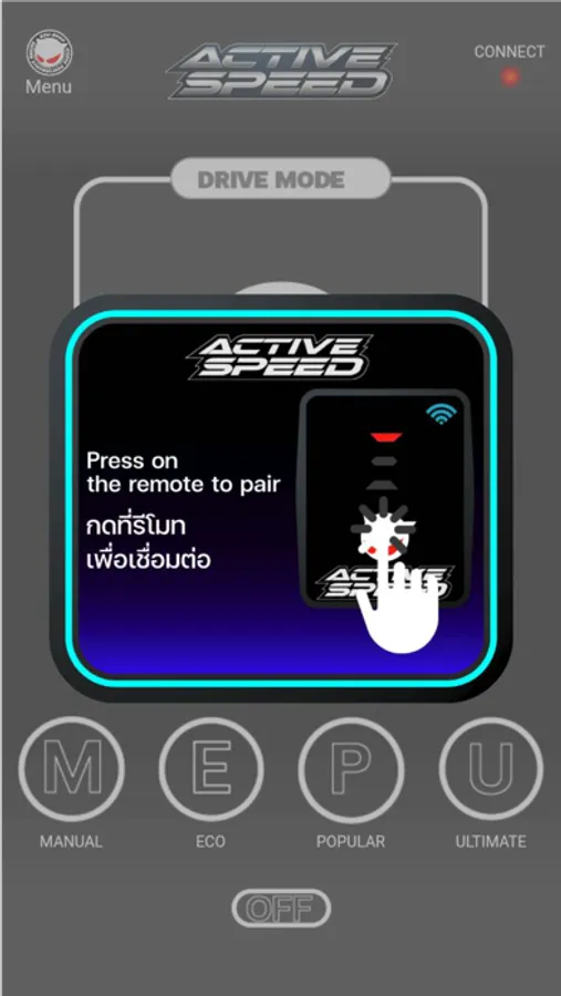 Active Speed App คือ App ที่ใช้สั่งปรับเปลี่ยนโหมดการตอบสนองของคันเร่งให้ดีขึ้นตามโหมดที่เลือก ในตัว Active Speed ที่รีโมทจะสามารถปรับโหมดการใช้งานได้ 10 ระดับ และที่ตัวApp จะมีโหมด พิเศษให้เลือกเพิ่มเติมจากโหมดที่มีอยู่ในรีโมท อีก 3 โหมด