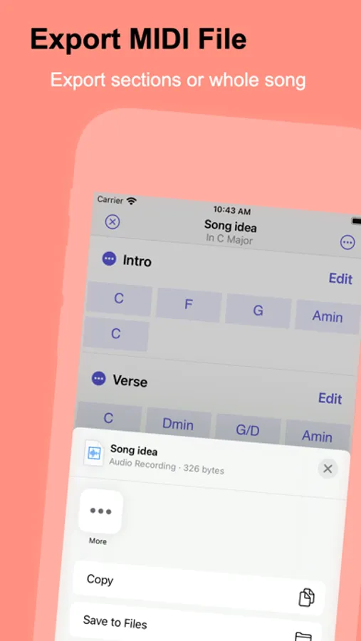 Song files are document-based and can be stored on your device or in the cloud. When you are done with your song you can bring it to your favorite DAW with MIDI file export.