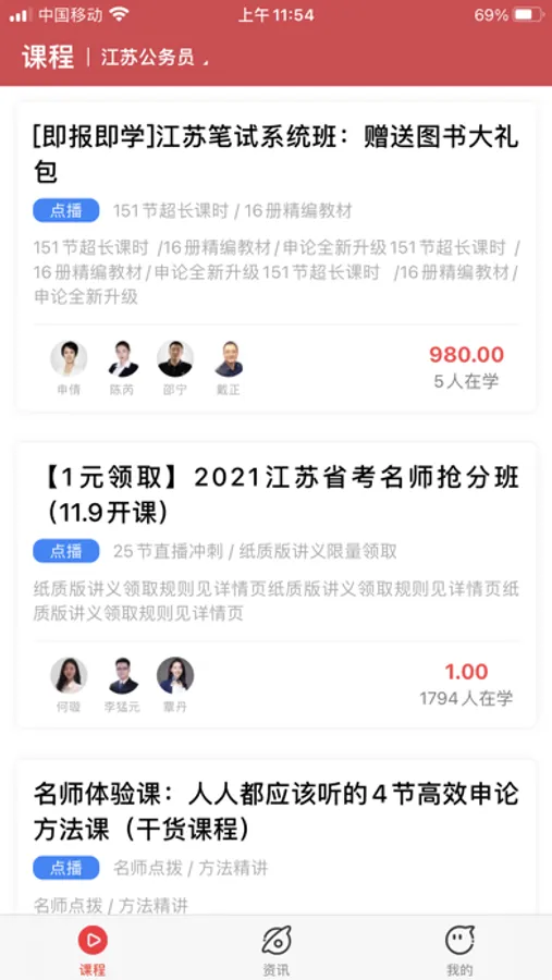 2、名师课程。邀请公考培训界名师授课指导,丰富的直播和点播资源任君选择。