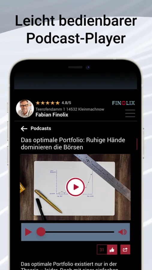 Profitieren Sie von aktuellen Angeboten und Nachrichten, verstehen Sie Zusammenhänge besser durch unsere Wissensfunktion – und lauschen Sie Podcasts rund um das Thema Geld. Ob Finanzen nun für Sie eher ein Hobby oder eher eine Pflicht sind, die FINOLIX-App hilft Ihnen, den Durchblick zu bekommen und zu behalten.