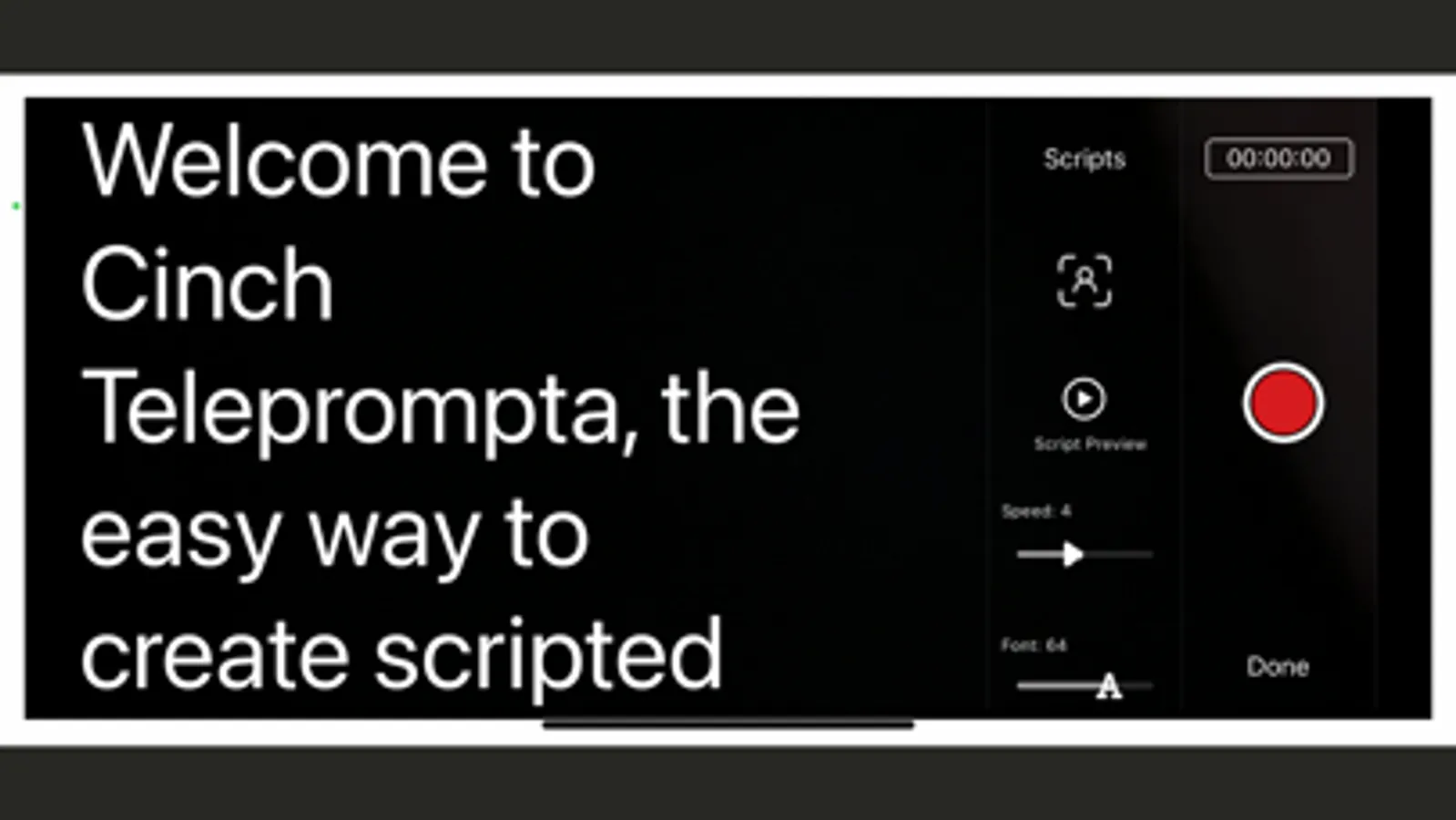 The app produces HD video from the rear camera and from the Cinch Teleprompta camera on the front of iPhones. With an integrated teleprompter function called Teleprompta, you can copy and paste your script from email, websites or documents on your device or type your scripts directly into Teleprompta. Create as many scripts as you want. Using Cinch Teleprompta, you’ll never be lost for words again. You can rehearse your scripts as often as you like, change the reading speed or set a font size to suit you. When you are ready to record, the app will count you in like a pro.