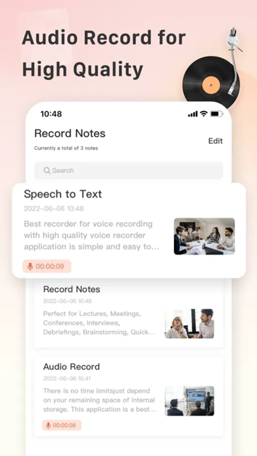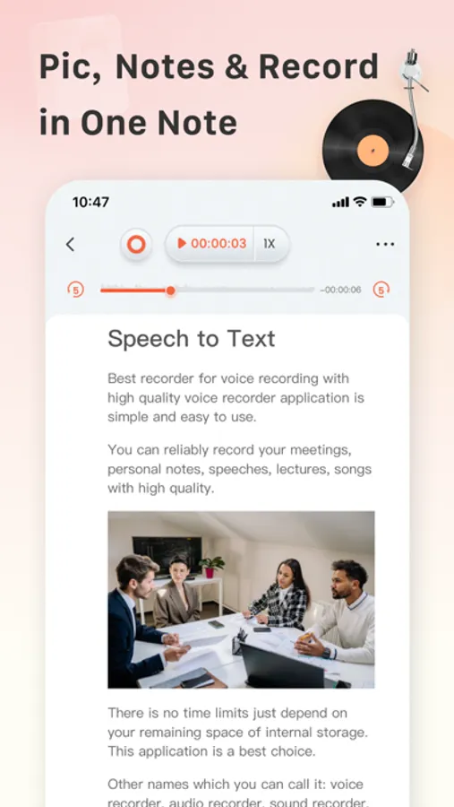 Audio Recorder have professional recording, recording-to-text, multi-language transcription, note memo, external recording import-to-text and other features. It is a practical tool for daily office voice and text recording, with simple operation and quick conversion.