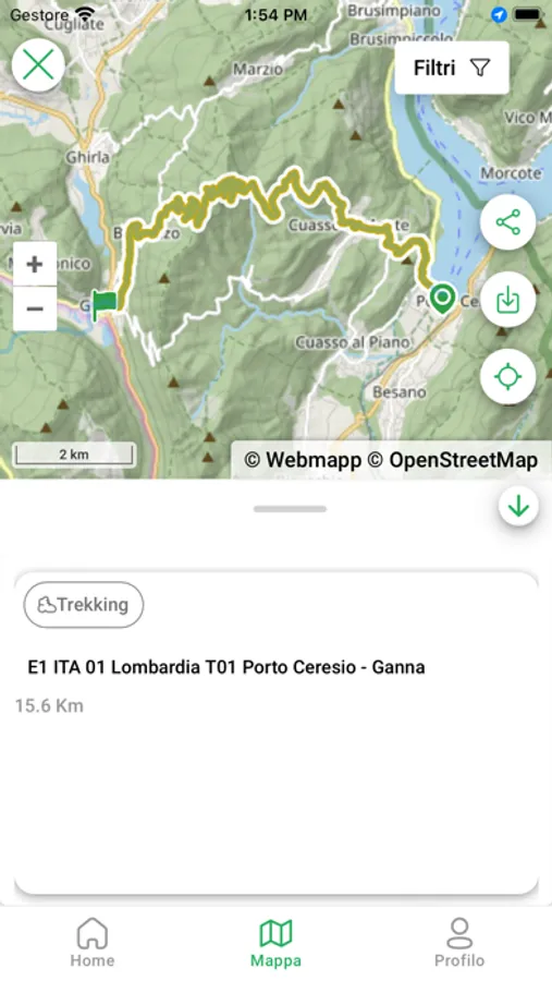 + navigare la mappa dei sentieri europei (e-paths) che attraversano l'Italia e gli altri cammini gestiti dalle associazioni affiliate F.I.E. (Federazione Italiana Escursionismo)