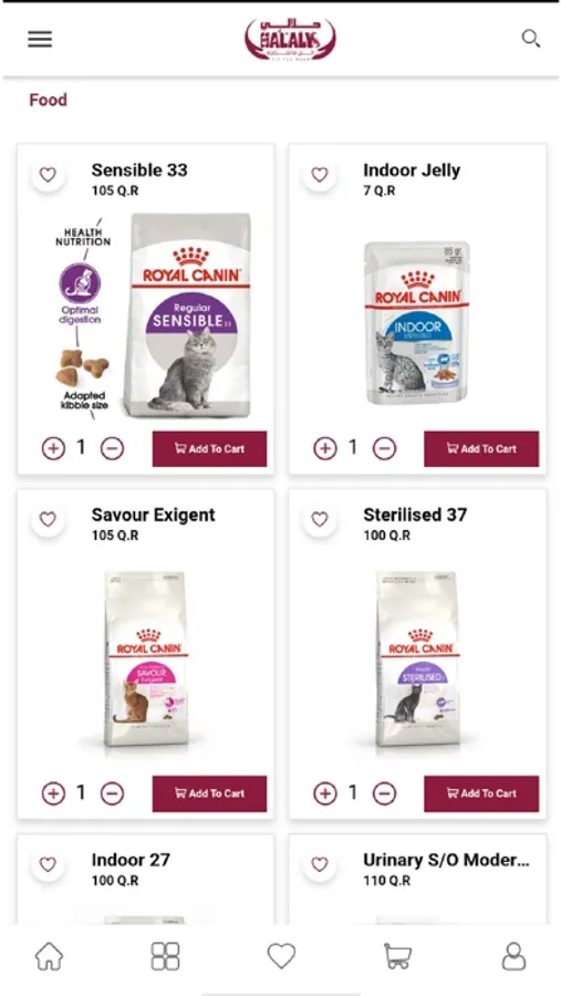 Not just Food, there are also food and water bowls, beds, carts, carriers, medicines, toys, grooming products, treats and much much more, all on Halaly.