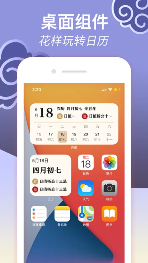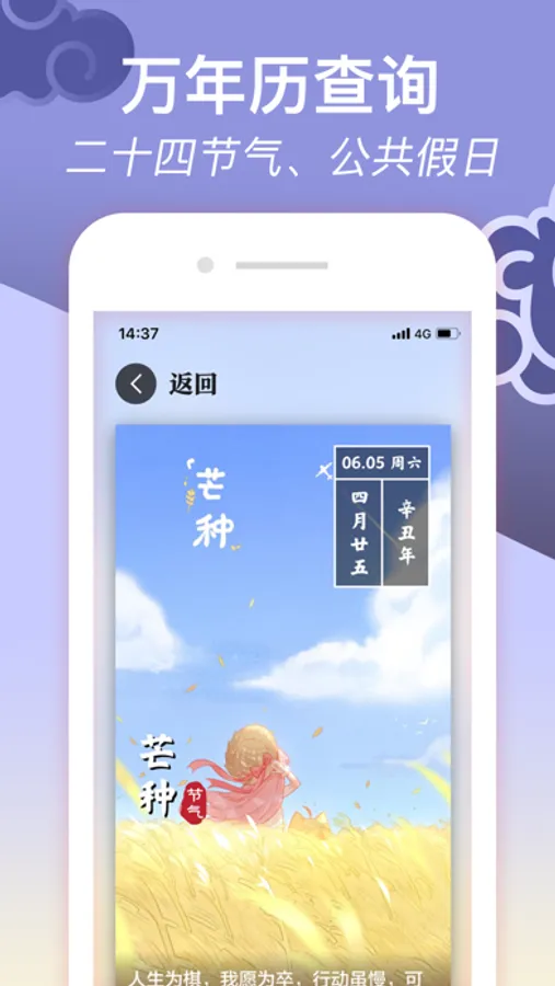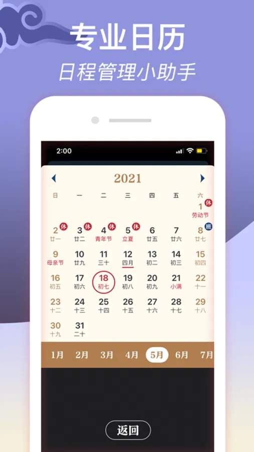 农历节气,黄历宜忌,良辰吉日精准查算,小而美的中华万年历app一应俱全!轻松查询农历(阴历)、公历(阳历)以及二十四节气和公共节假日,推算运势吉日,成为你的黄历小管家。