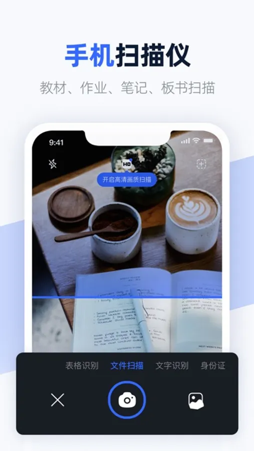 - 你的课堂扫描仪,自动裁切边框去除杂乱背景,转换为清晰扫描件,帮助您整理资料。可生成高清JPEG、PDF、PPT和word文件。