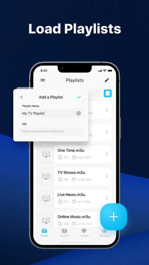 - Add a link or a file from your device in the following formats: m3u, m3u8, xspf
