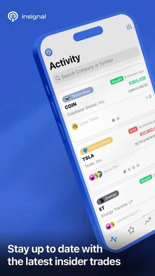 ‣ Access insider trade reports in real-time as they are released or search by company to view historical insider trades.