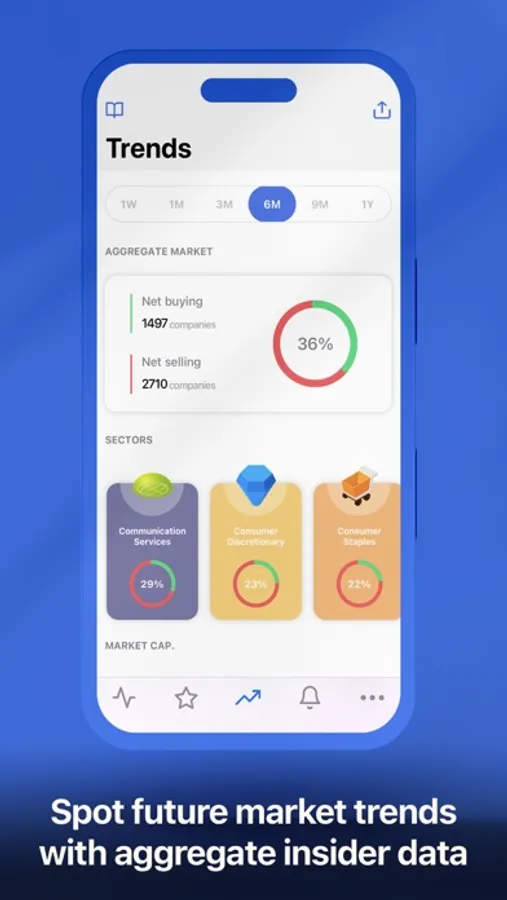 ‣ Observe and keep track of aggregate insider sentiment by the entire market, sector and market capitalization.