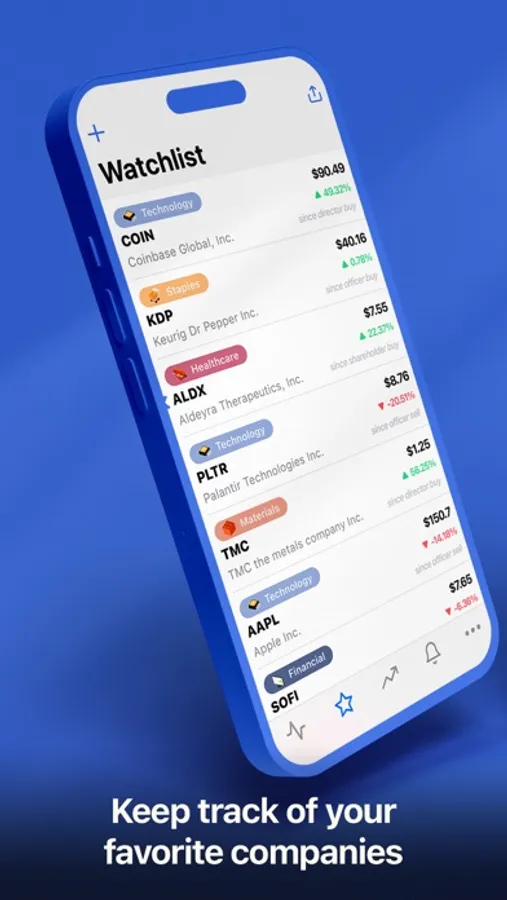 ‣ Add your favorite companies to your watchlist and monitor their price movement since their most recent insider trade.