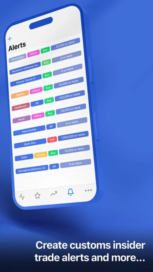 ‣ Create and customize alerts in various configurations so you can be notified of insider trades of your favorite companies, insiders, sectors or market capitalization.