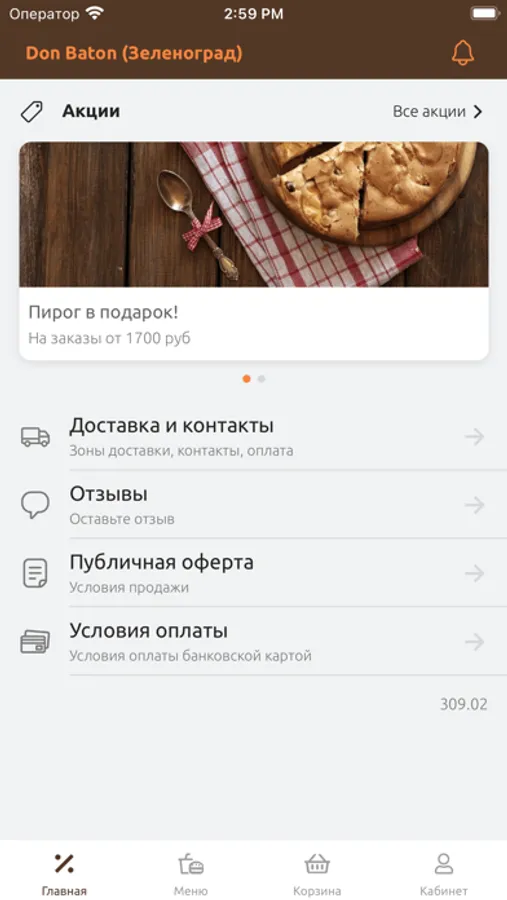 Оформление заказа на доставку еды от Дон Батон в Зеленограде
