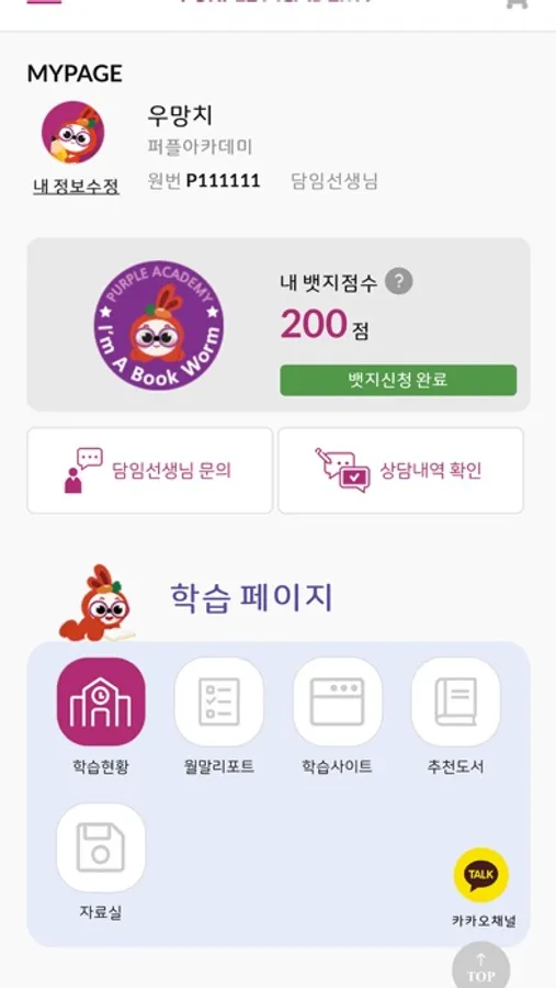 퍼플 아카데미는 학습 관리가 부족한 기존 온라인 교육을 뛰어넘고자, 쌍방향 소통방식의 스마트 온라인 학습 매니지먼트 시스템을 구축하였습니다. 이를 통해 수준 높은 온라인 학습과 한국 방식의 매니지먼트 시스템 병행이 가능해졌고, 자연스러운 언어 습득과 퍼포먼스 달성이라는 두 마리 토끼를 잡았습니다.