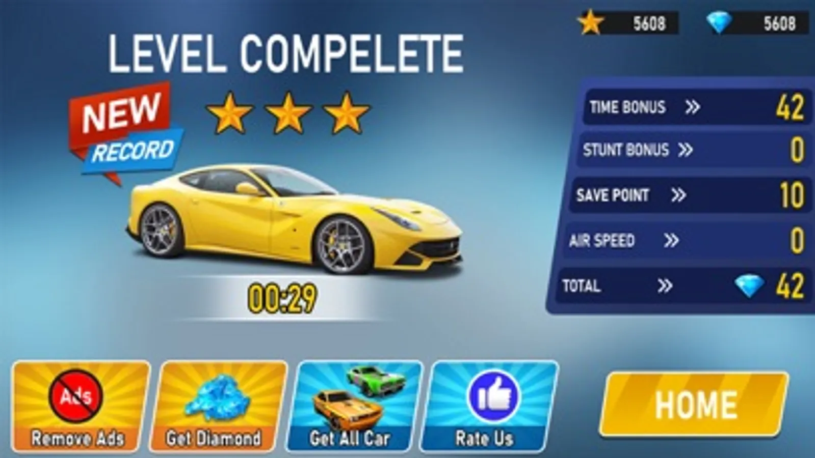 In the game there are many types of modern sports cars including monster trucks, mountain cars and off-road vehicles to give you a car driving experience could not be better. You can choose any vehicle of your choice and perform impossible stunts on aerial tracks. Speed up your hot car through impossible tracks, avoid obstacles or jump over obstacles and reach the finish as soon as possible in unlimited continuous time.