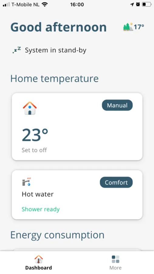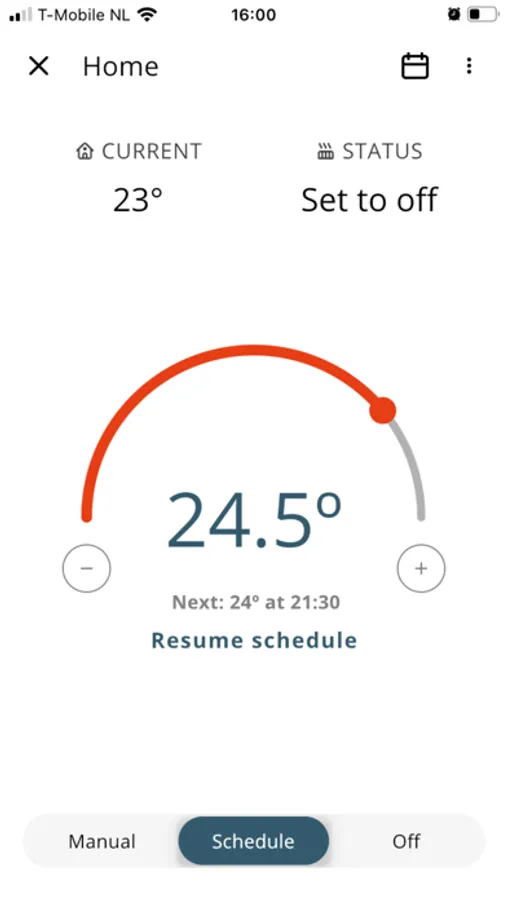 Remeha's smart thermostat also comes with a sleek, free app. With the Remeha Home app you can quickly and easily control the temperature in your home. Just from your smartphone. Whether you are at home, on the road or at work. Handy if you forgot to turn off the heating.