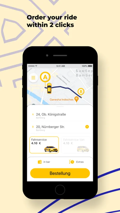 The Kabbi app is your quick and easy way to order a ride in the following cities: Bamberg, Fürth, Nuremberg, Munich.