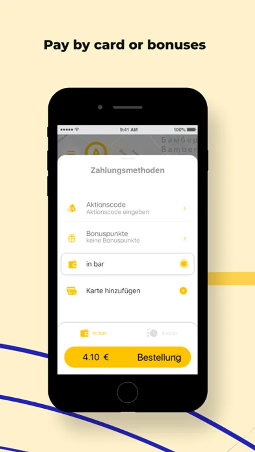 No cash with you at the moment? No problem! Cashless payment options are available in the app.