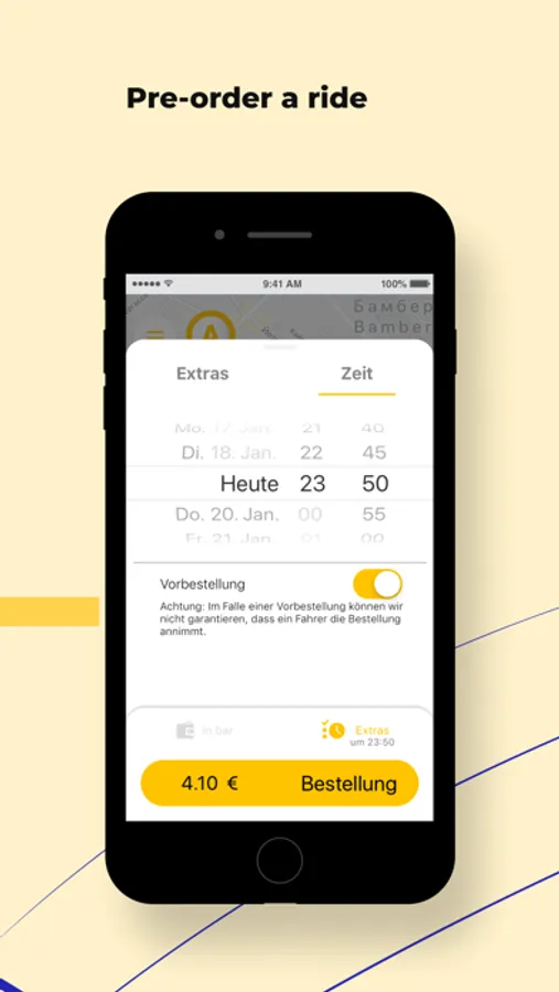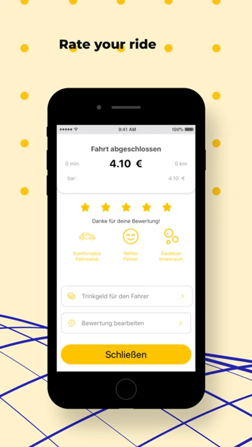 Track the arrival of your driver in real time and pay for your trip conveniently via the app. No matter where you need to go - whether to the airport or simply to the city centre. Have the fare displayed in the app before you start your journey. So, you don't have to worry about hidden costs!