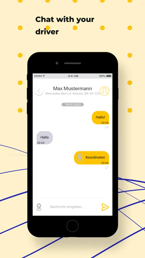 Your driver cannot find you? It is over now! With the chat function you can describe your pick-up location exactly and send your location.