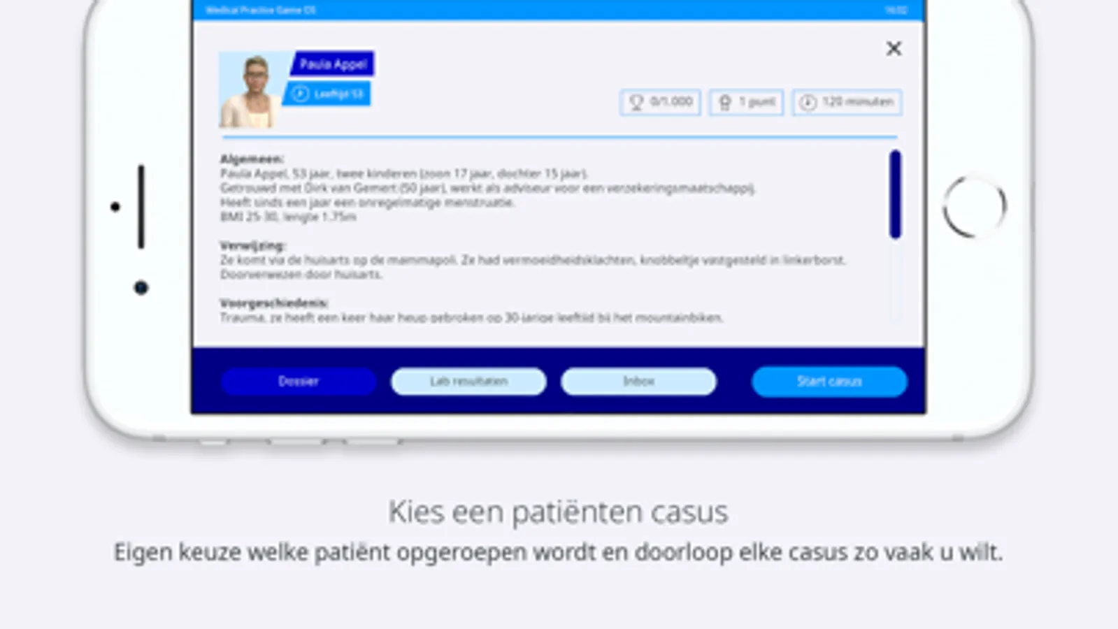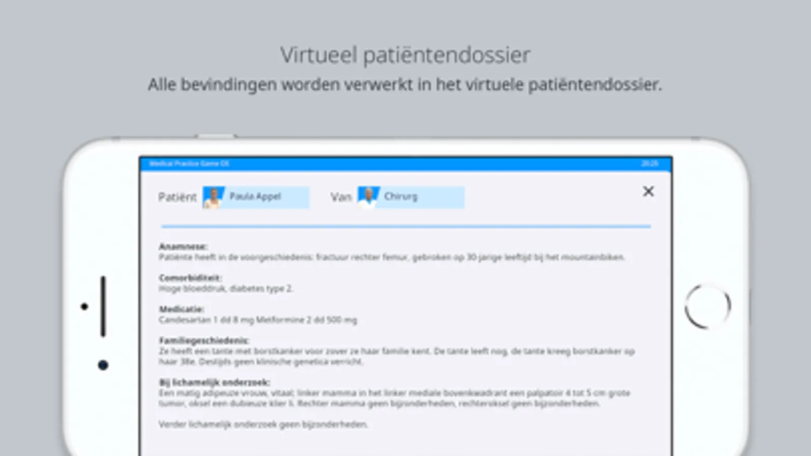 Tijdens elke casus krijgt u informatie over verschillende onderwerpen met betrekking tot bijvoorbeeld borstkanker of andere ziektebeelden. De inhoud is ontwikkeld door artsen en gebaseerd op de actuele richtlijnen.