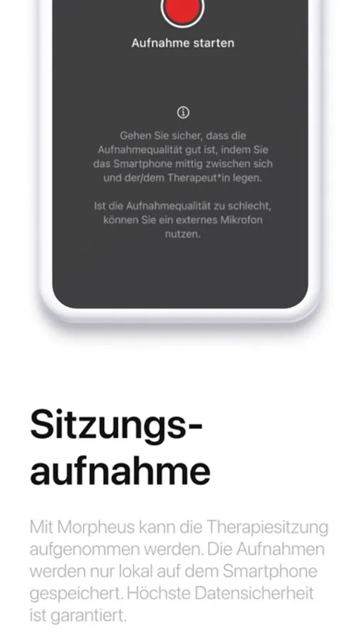 Morpheus ersetzt ausdrücklich nicht die Diagnose eines Arztes oder soll die:den Therapeuten:in ersetzten. Morpheus ist eine Therapiebegleitende App und unterstützt den Weg zu einer erfolgreichen Therapie in Kombination mit einem Therapeuten:in.