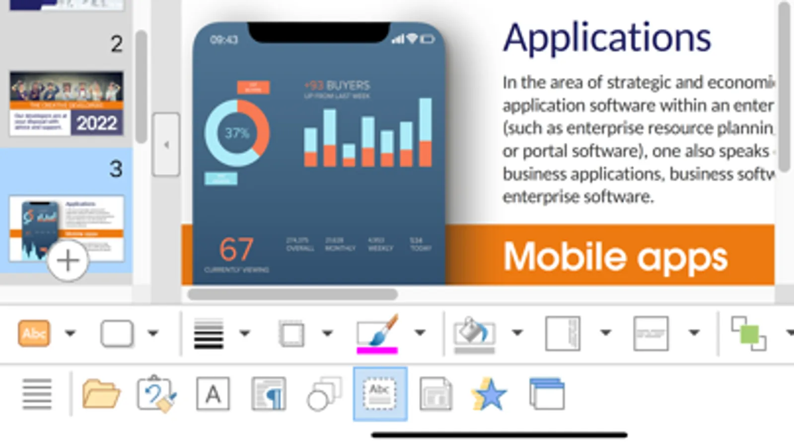 A single subscription unlocks these features simultaneously in Presentations, TextMaker and PlanMaker for iOS.