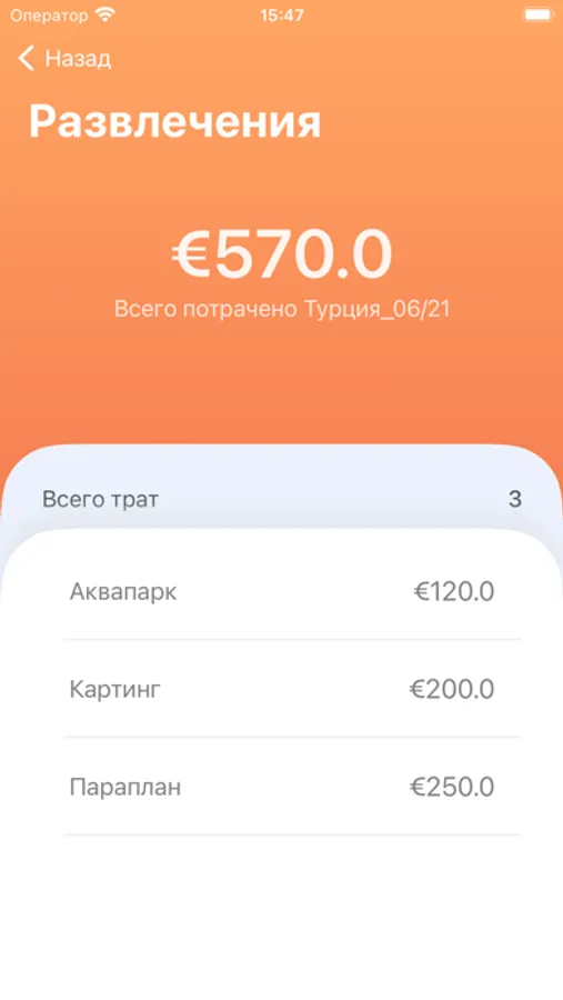 Вы - финансовый директор поездки! Друзья сложили свои деньги и передали их Вам с твердой уверенностью, что Вы именно тот человек, который сможет правильно и аккуратно вести учет расходов. Конечно сможете! Ведь с нашим приложением это стало совсем просто! Аккуратно вносите расходы, а все остальное приложение сделает за Вас!