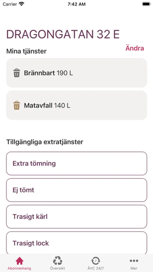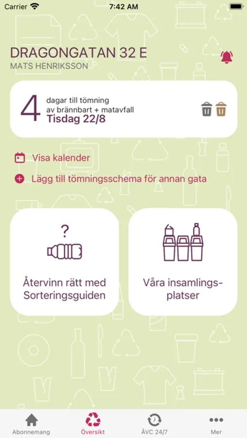 Här kan du enkelt hålla kolla på kommande sophämtningar och få påminnelser innan ditt avfall hämtas. Det finns även möjlighet att göra beställningar och ändringar i dina renhållningsabonnemang direkt i appen.
