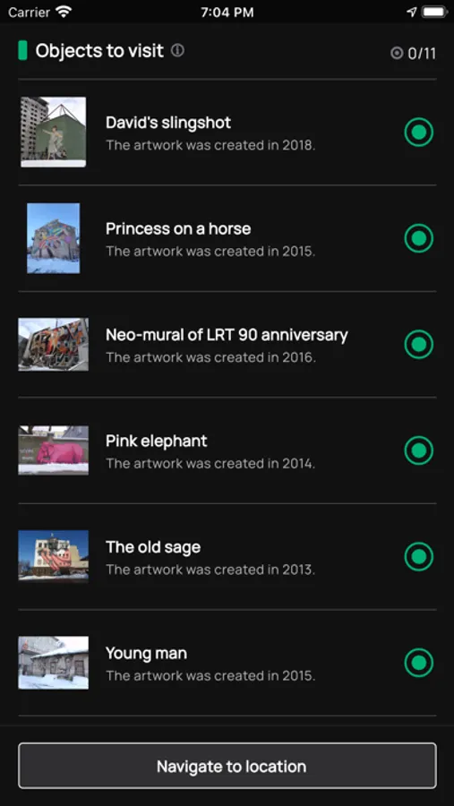 When you arrive at the location - select the point of interest that you want to see and start your Augmented Reality guide to find it. Once you find the object - you will receive additional information, historical facts and pictures about it.