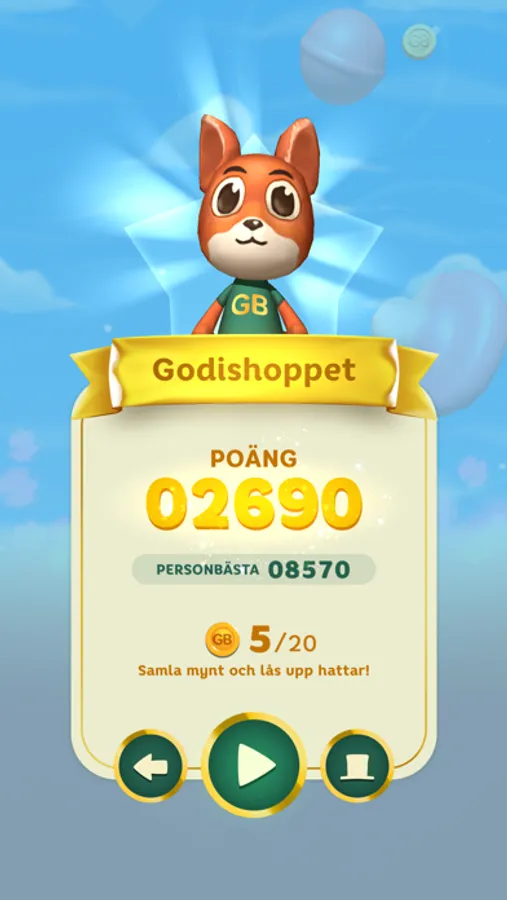 Genom att hoppa på godsakerna ska du ta dig så högt upp som möjligt. Men glöm inte att samla guldmynt längs vägen mot toppen! Samla tillräckligt många och lås upp hattar och även fina erbjudanden i Godisbankens butiker. Vad som krävs för att få erbjudanden kan du se på www.godisbanken.se
