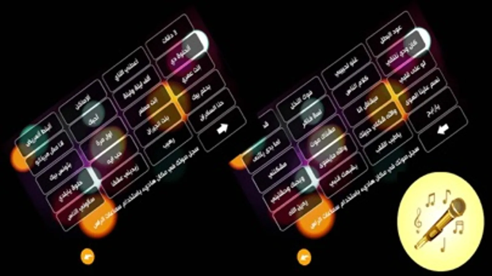 تطبيق كاريوكي العرب تطبيق مجاني , هل تحب غناء الكاريوكي؟ هل تريد تجربة صوتك على اكثر من 40 اغنيه عربية؟ إذا كنت من محبي الغناء والموسيقى ، فاهلا وسهلا بك حيث تطبيق كاريوكي العرب الذي يمنحك الفرصة لغناء كل هذه الاغاني، الآن قم بإبراز موهبتك الفنية وحاول الغناء بهذه الطريقة. برنامج فريد من نوعه والأكثر إثارة.