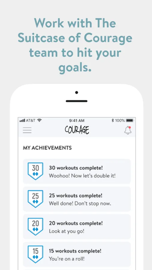 With the Suitcase of Courage application you can start tracking your workouts, measure your results, and message your coaches on Suitcase of Courage team.