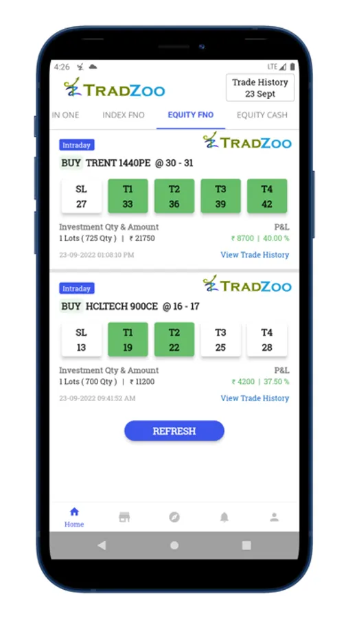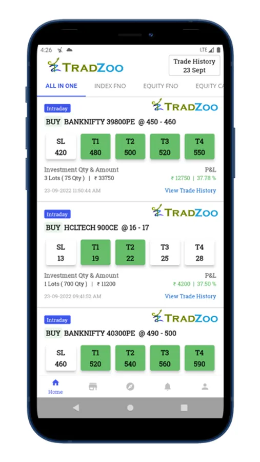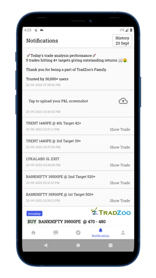 TradZoo provides you with free intraday learning and historical ideas. This app is only to watch market prices and learn swing/intraday ideas.