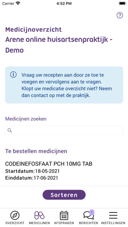 • Inzage in uw actuele medicatieprofiel zoals bekend bij uw huisarts.