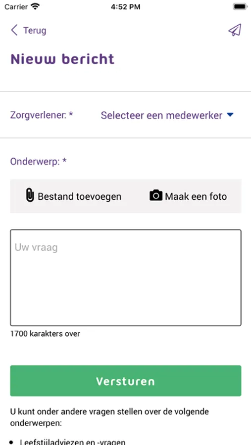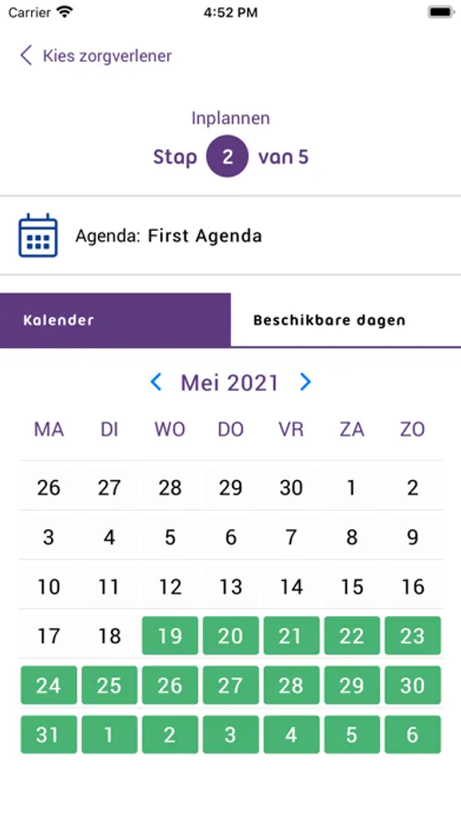 • Bekijk de lege plekken in de agenda van uw arts en boek een afspraak op het moment dat het u uitkomt. U moet tevens de reden van uw afspraak vermelden.