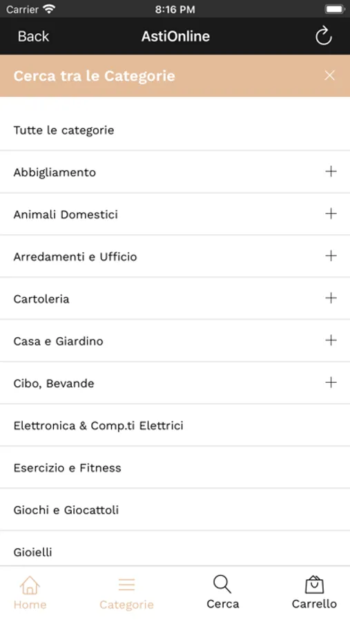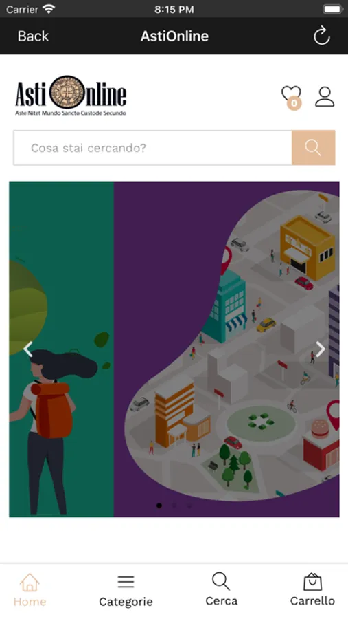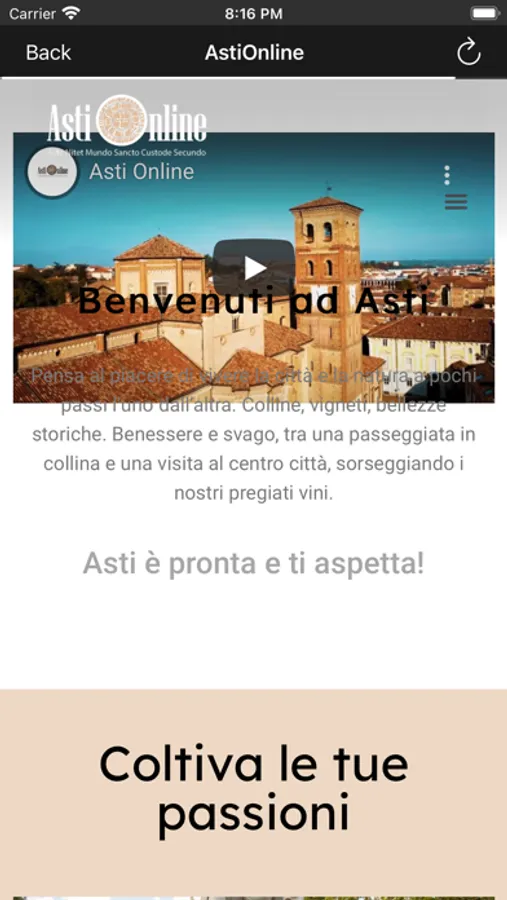 Il Marketplace della Città di Asti comprende le sezioni di Marketplace nella quale sono situate tutte le attività all'interni della città, Delivery comprendente tutti i ristoranti e i fast food che possiedono un servizio di delivery e Turismo che presenta una guida ai luoghi e monumenti storici di Asti