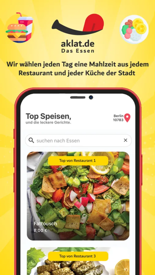 Wählen Sie ein Restaurant, bestellen Sie Speisen, und decken Sie Ihren Tisch, das wirklich köstliche Abendessen ist unterwegs.