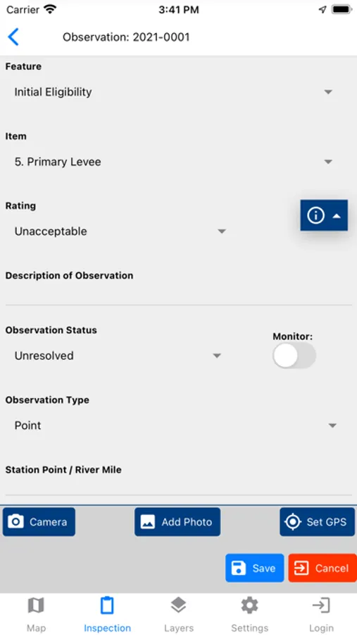 Levee Safety observation collection tool for levee segments in the National Levee Database.