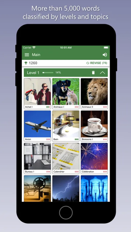 Free app to learn French by improving your VOCABULARY in an easy and fast way, with more than 5,000 words classified by levels and topics.