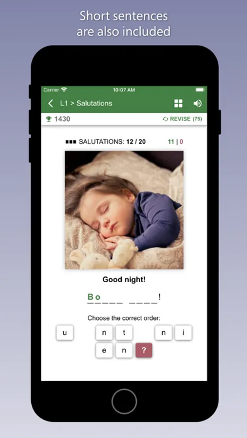 - Intelligent revision system which will make you revise the word according to your hits and mistakes. The more often you get a word wrong, the more often this word will be revised until you remember it.