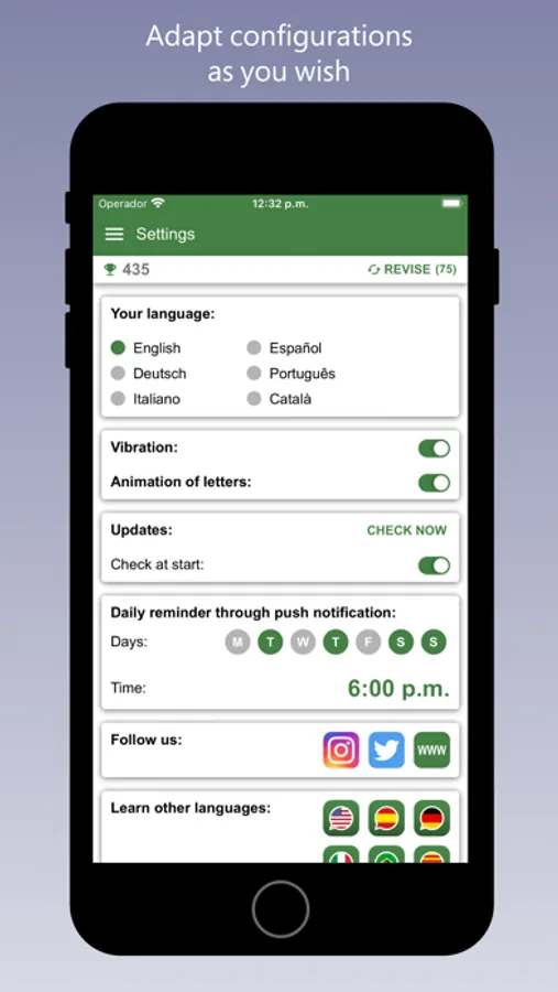 - Multi-user system: The app can be used by several users. Each user can access one’s own account with a password and have the progress saved. Perfect for families or couples who share the same device, like a tablet.