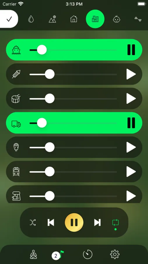 ● Over 70+ unique ambient sounds, separated in 8 Sections. (Water, Nature, Home, City, Baby, White Noise, Instruments & Animals).