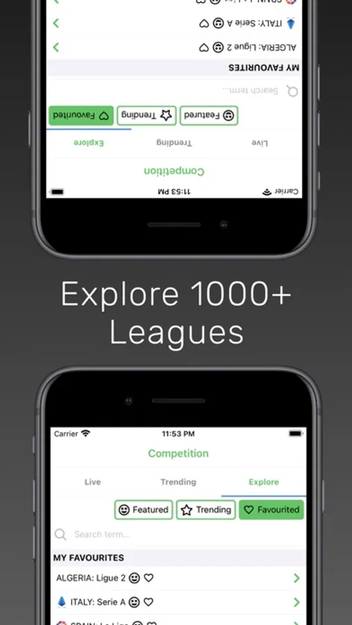 + Search thousand of your favourite competitions across country, including major cups and leagues with match details, standings as well as up coming fixtures.