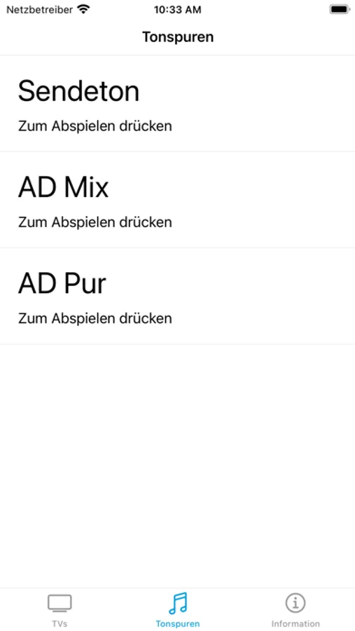 - Kopplung des Smart-TV Gerät mit dem IPhone/IPad für die lippensynchrone Wiedergabe zur Fernsehsendung via BR-Startleiste und HbbTV-Apllikation „BR Audiodeskription“