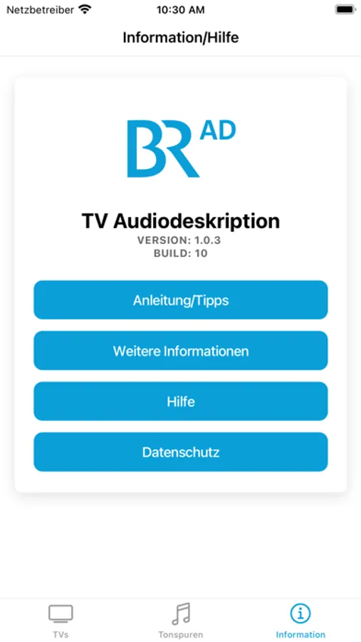 7. Die HbbTV-App BR Audiodeskription ist ausgewählt und gestartet.