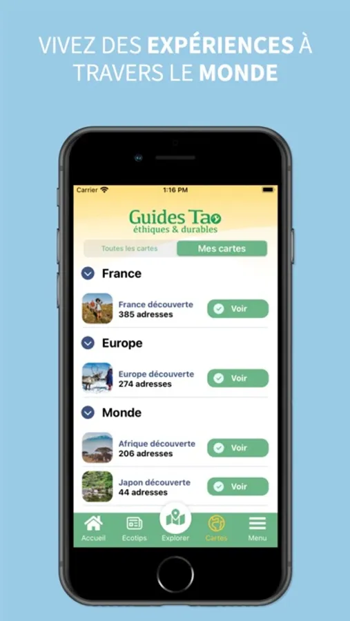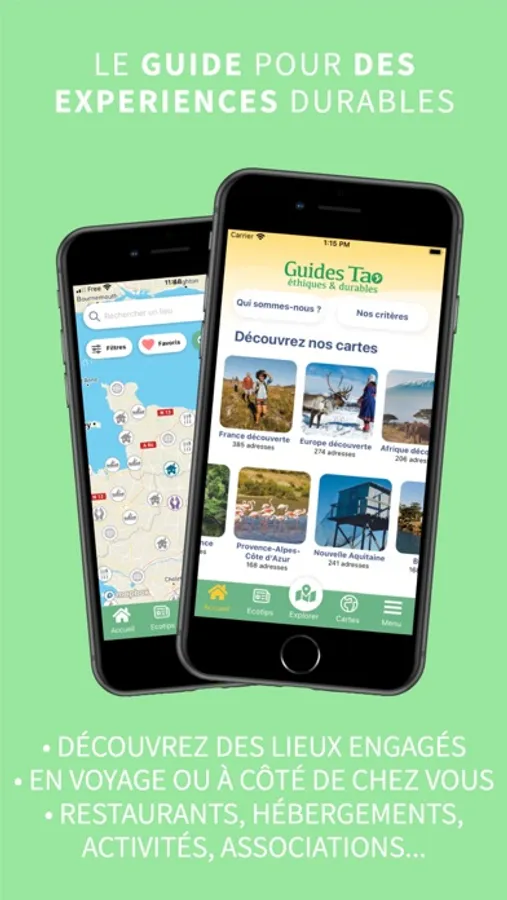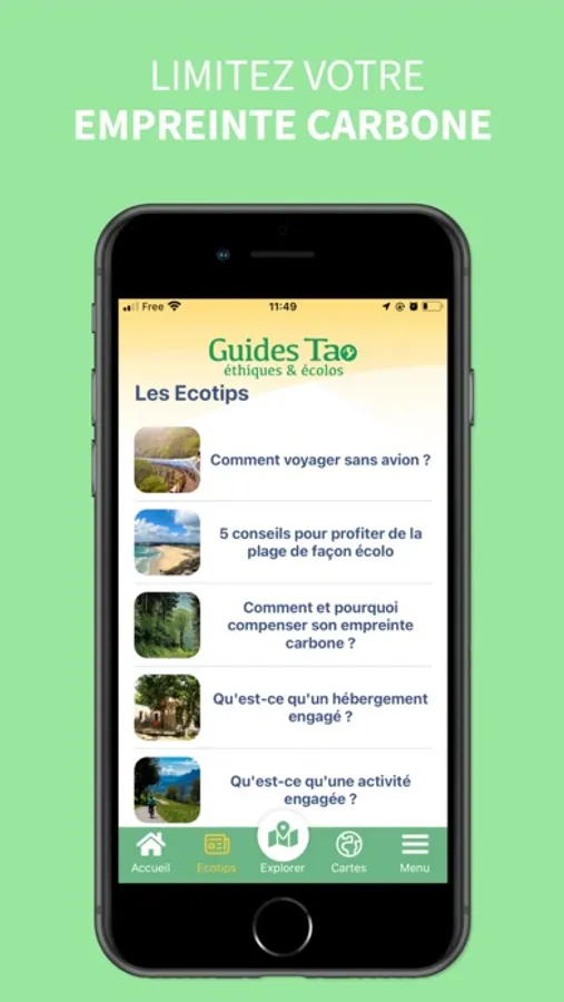 L'application Guides Tao est conçue comme un guide de voyage interactif, facilitant vos choix pour limiter votre empreinte carbone.