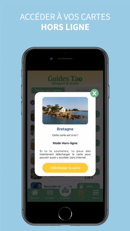 Une fois que vous avez téléchargé l'application Guides Tao, vous pouvez télécharger les cartes correspondant aux destinations qui vous intéressent.