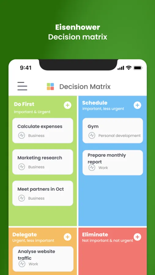 - Use the Eisenhower decision matrix to prioritize your tasks