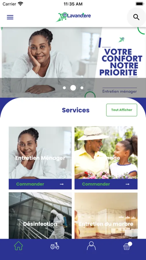 E-LAVANDIERE, notre plateforme d’offre de service et de produit en ligne via une application internet et mobile vient résoudre deux (2) problématiques principales : - Rendre les journées de nos cibles simples et agréables, afin qu’elles se concentrent sur leurs occupations quotidiennes ; -Créer un réseau de professionnels des métiers du service à la personne et au domicile accessible, fiable, bien formé et disponible immédiatement. Nos maîtres mots sont la simplicité, la fiabilité, l’accessibilité, la disponibilité. Notre engagement est d’offrir qualitativement, toute sorte de service au domicile et d’être disponible 24 h/ 24. Avec E-LAVANDIERE, nous sommes chez vous !